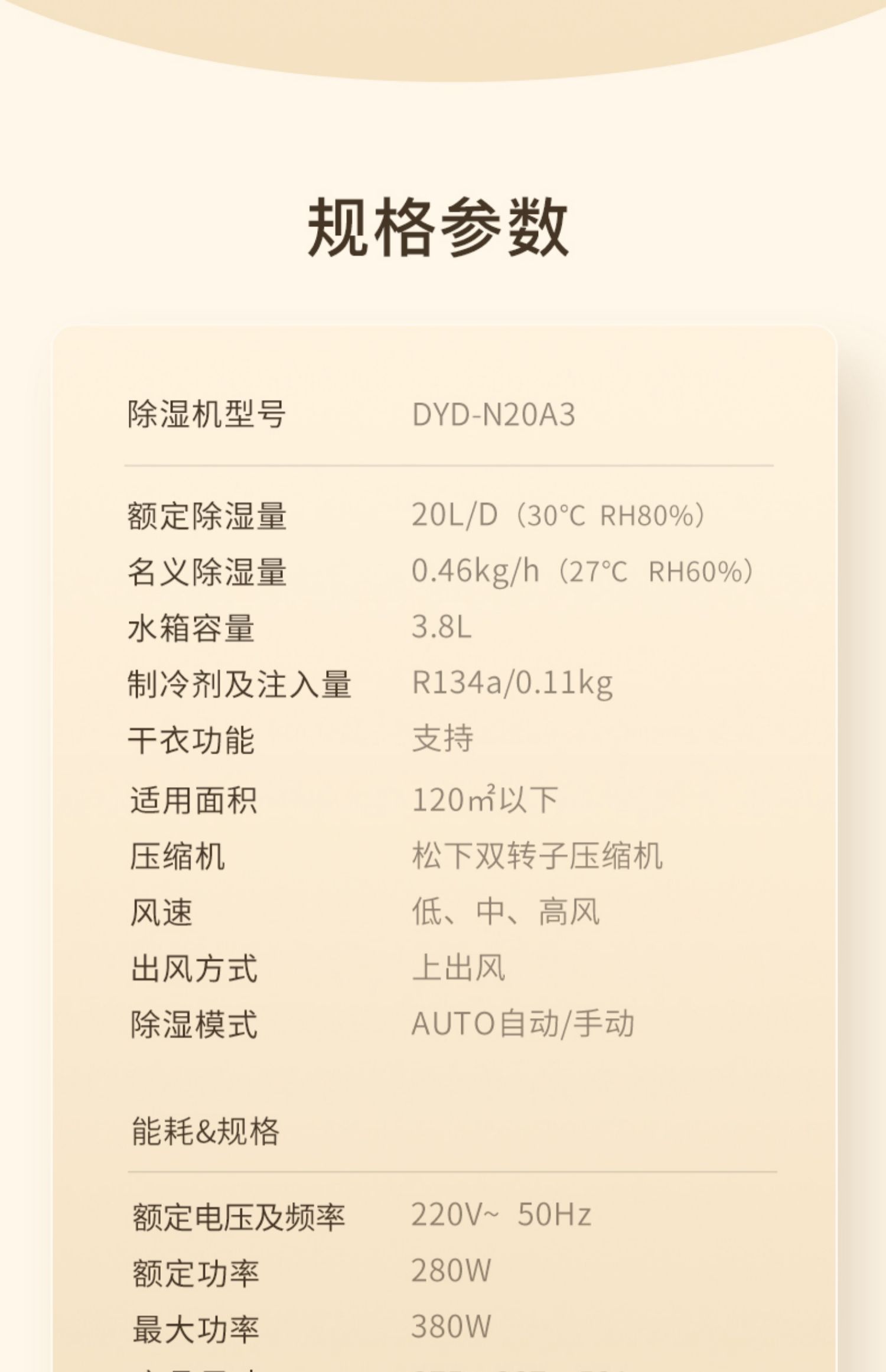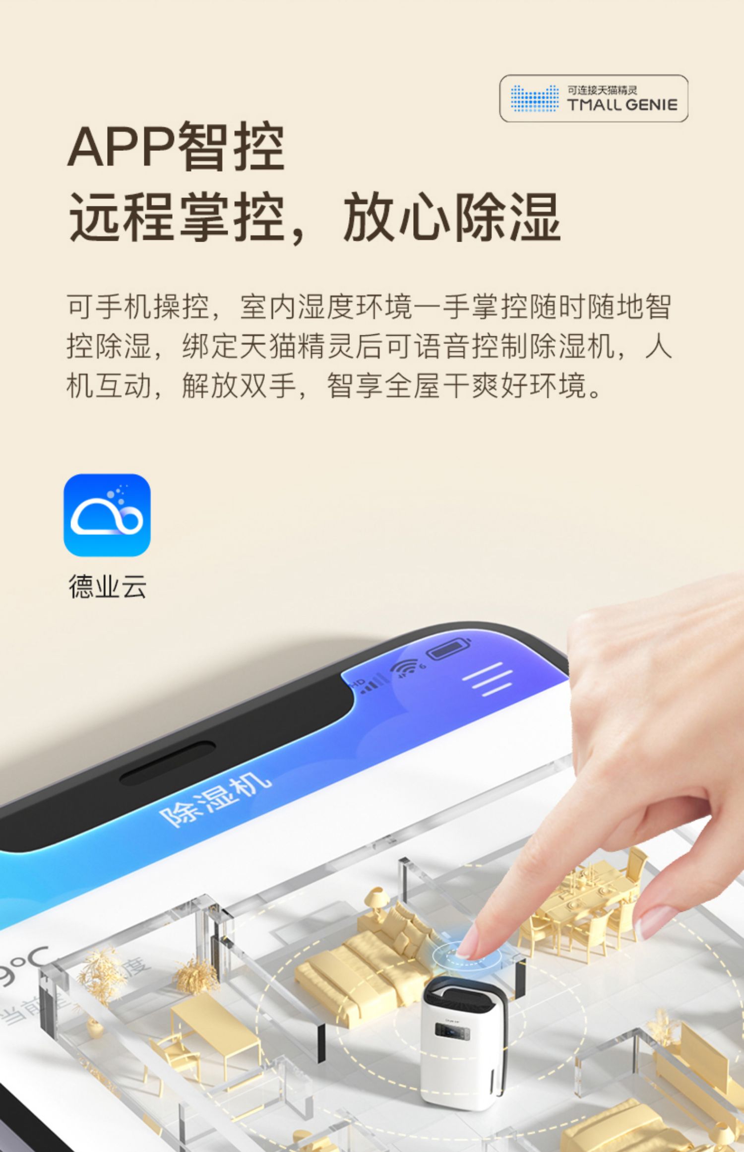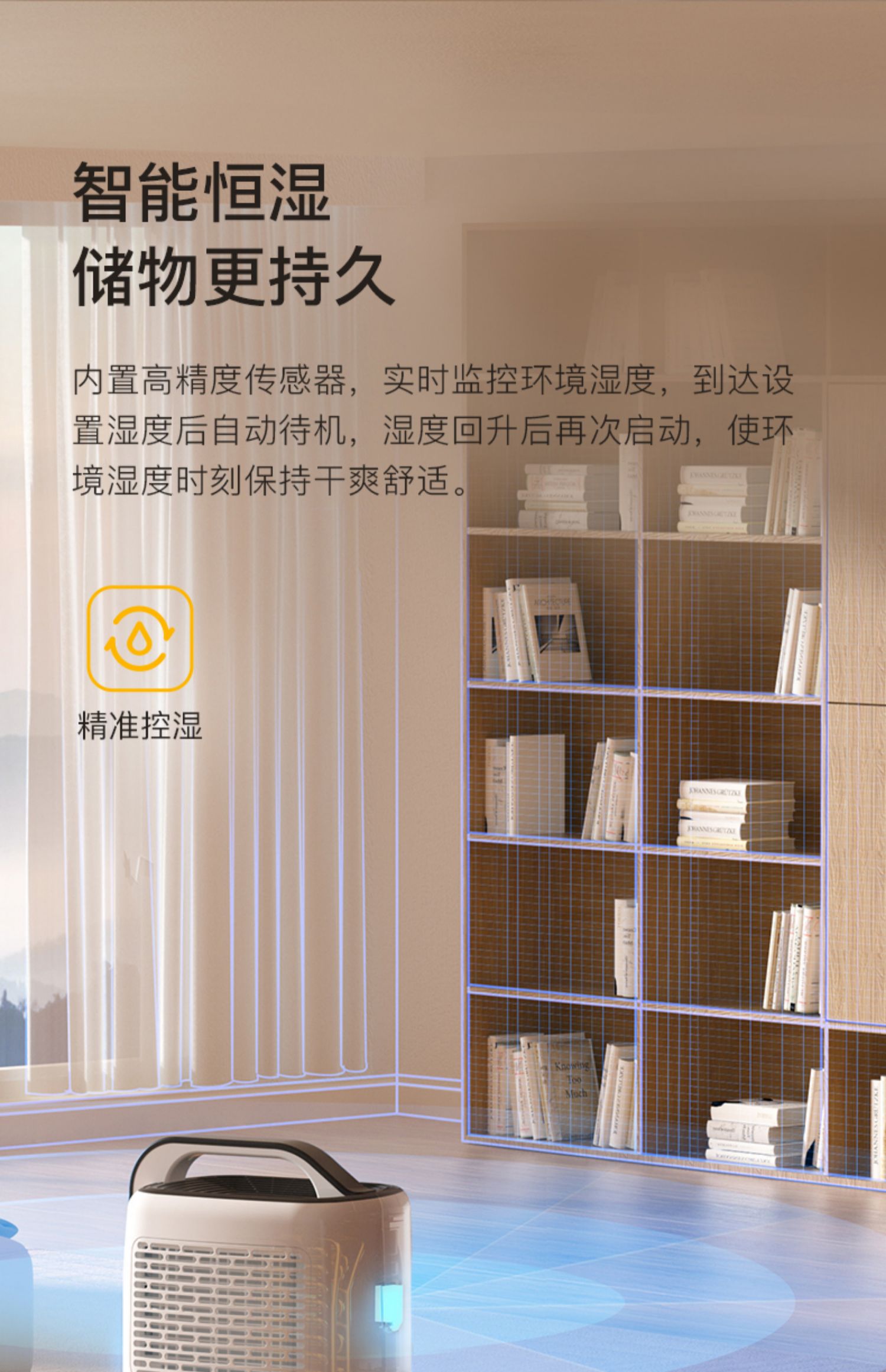 磨砂质感提手,时尚跑道出风设计 APP远程控制 负离子功能 除湿大约面积:层高2.6米 25~50㎡