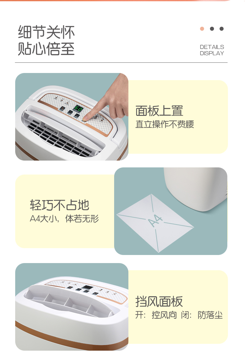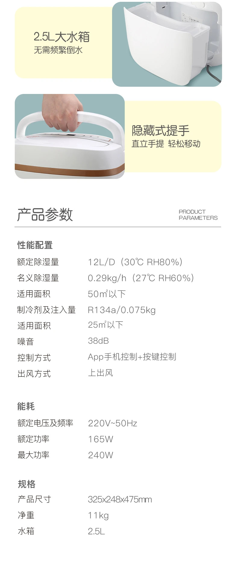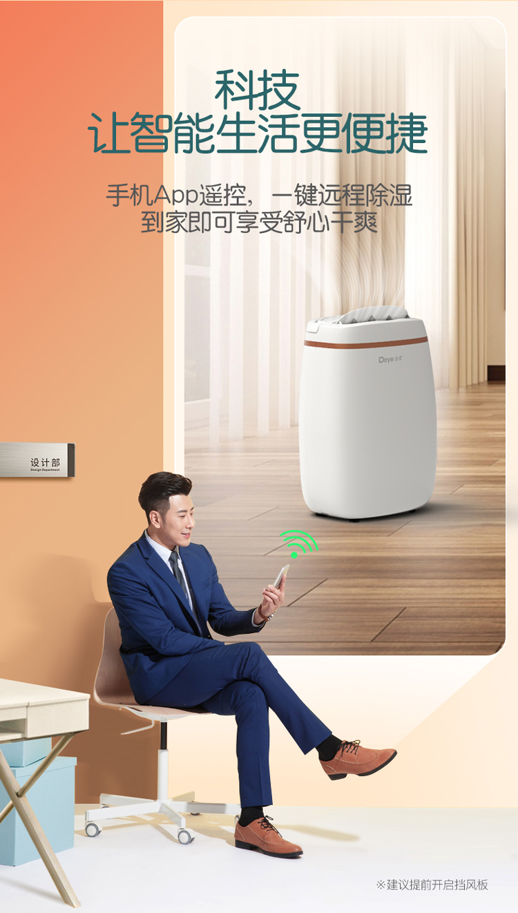 适用于家庭,储物间等小型场所,使用面积约15~25m2,低噪音远程控制,可连天猫精灵