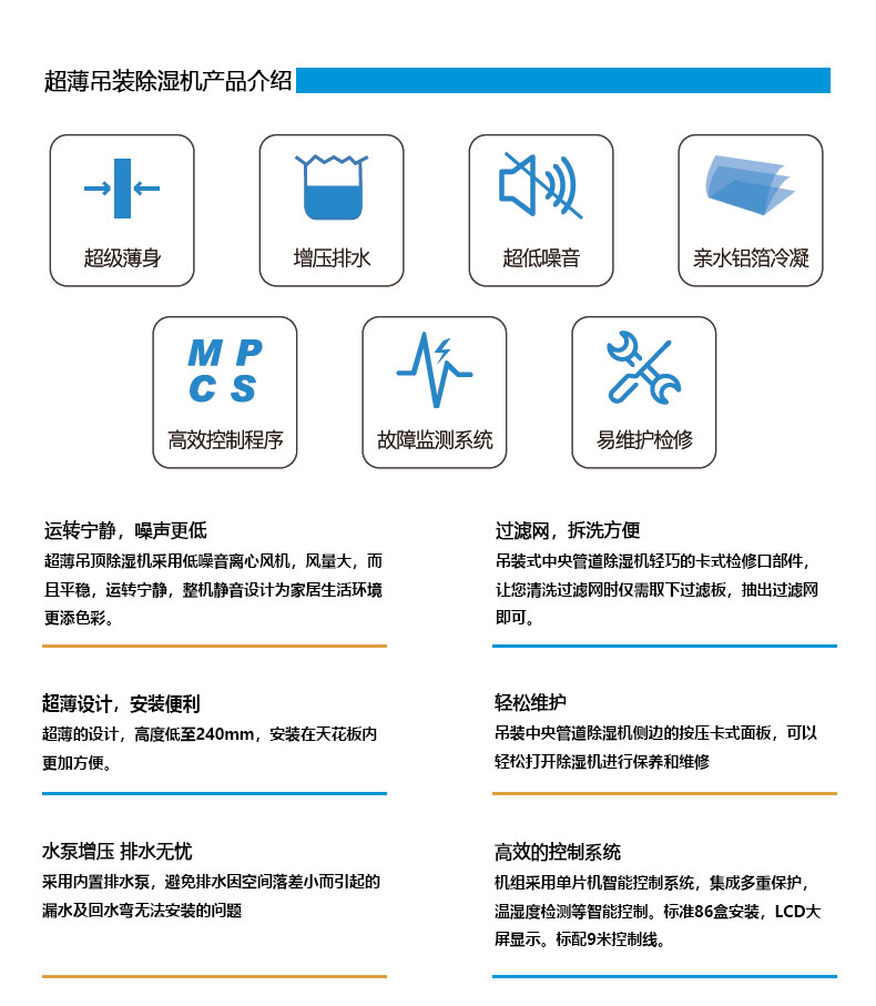 机器采用高寿命除湿机专用风扇马达,宁静,低噪音。