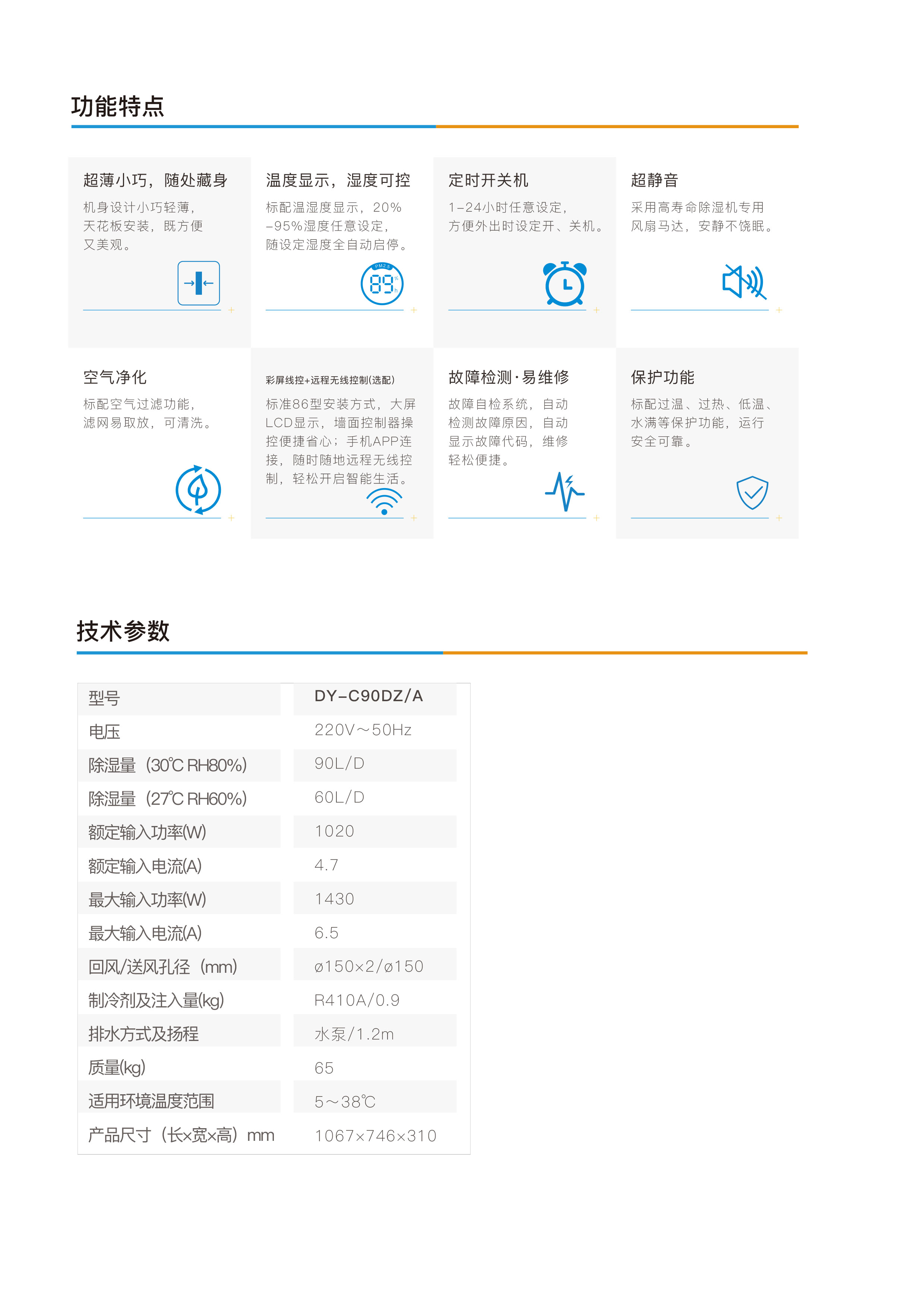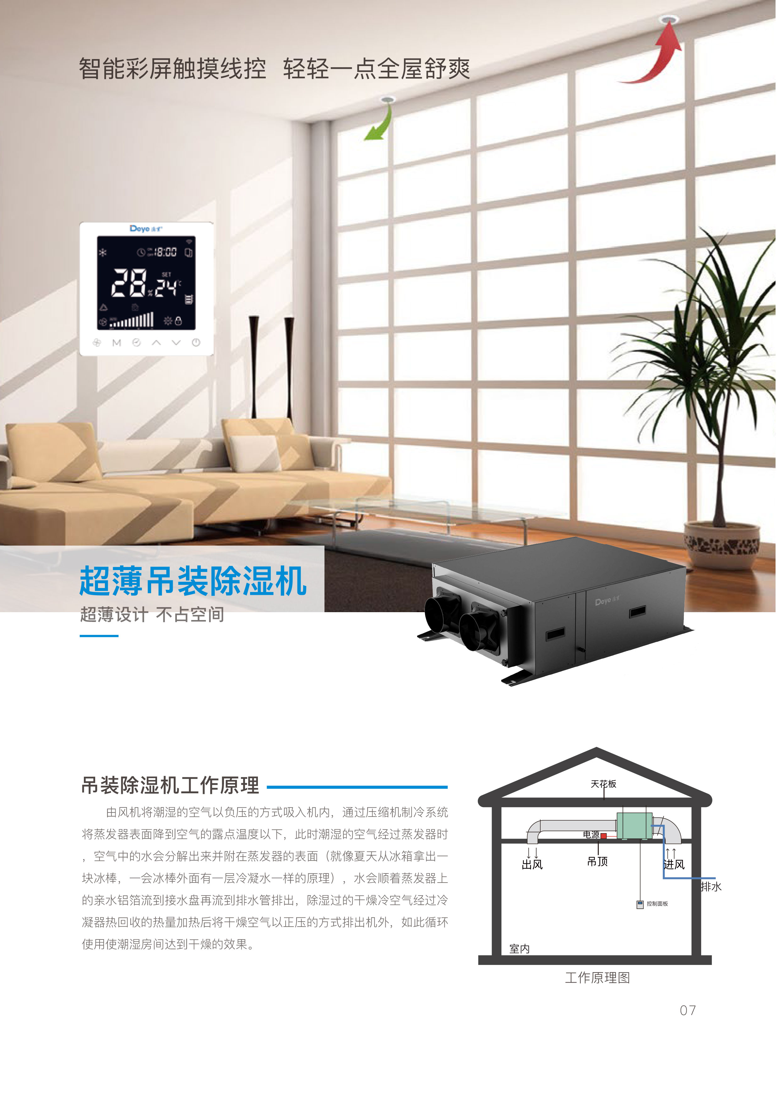 超薄吊装式除湿机,泵压式排水,除湿量90升/天