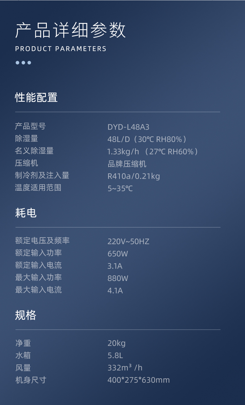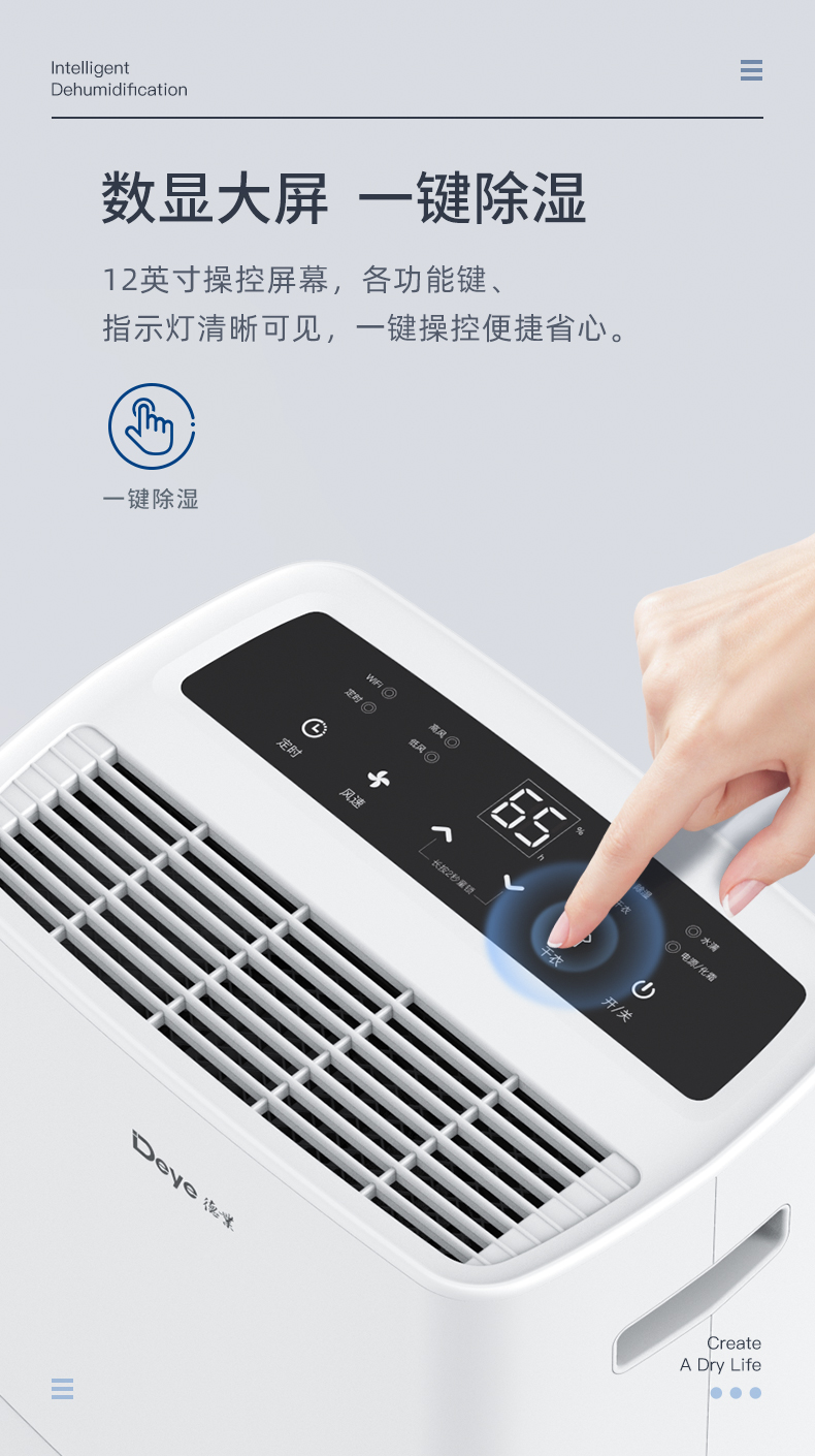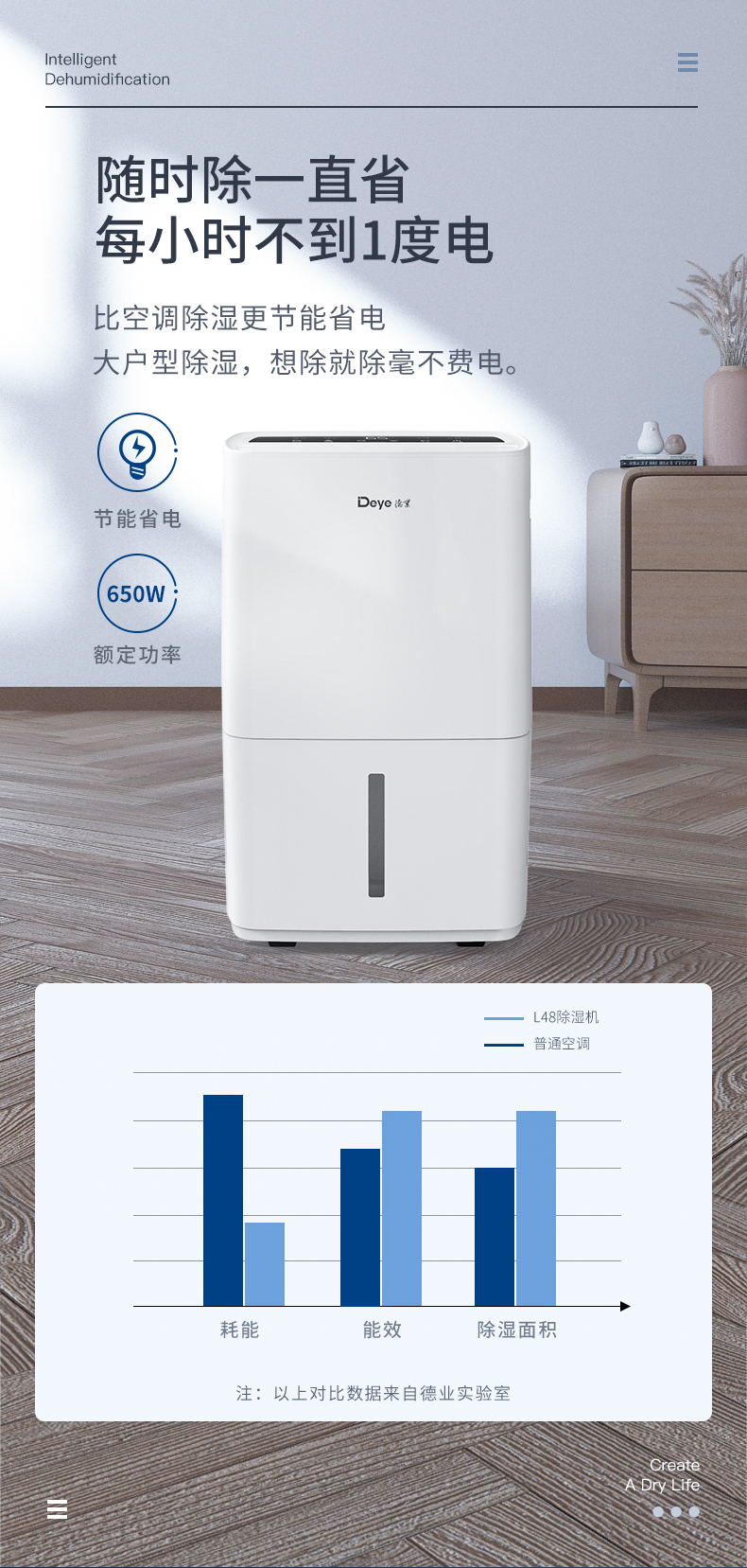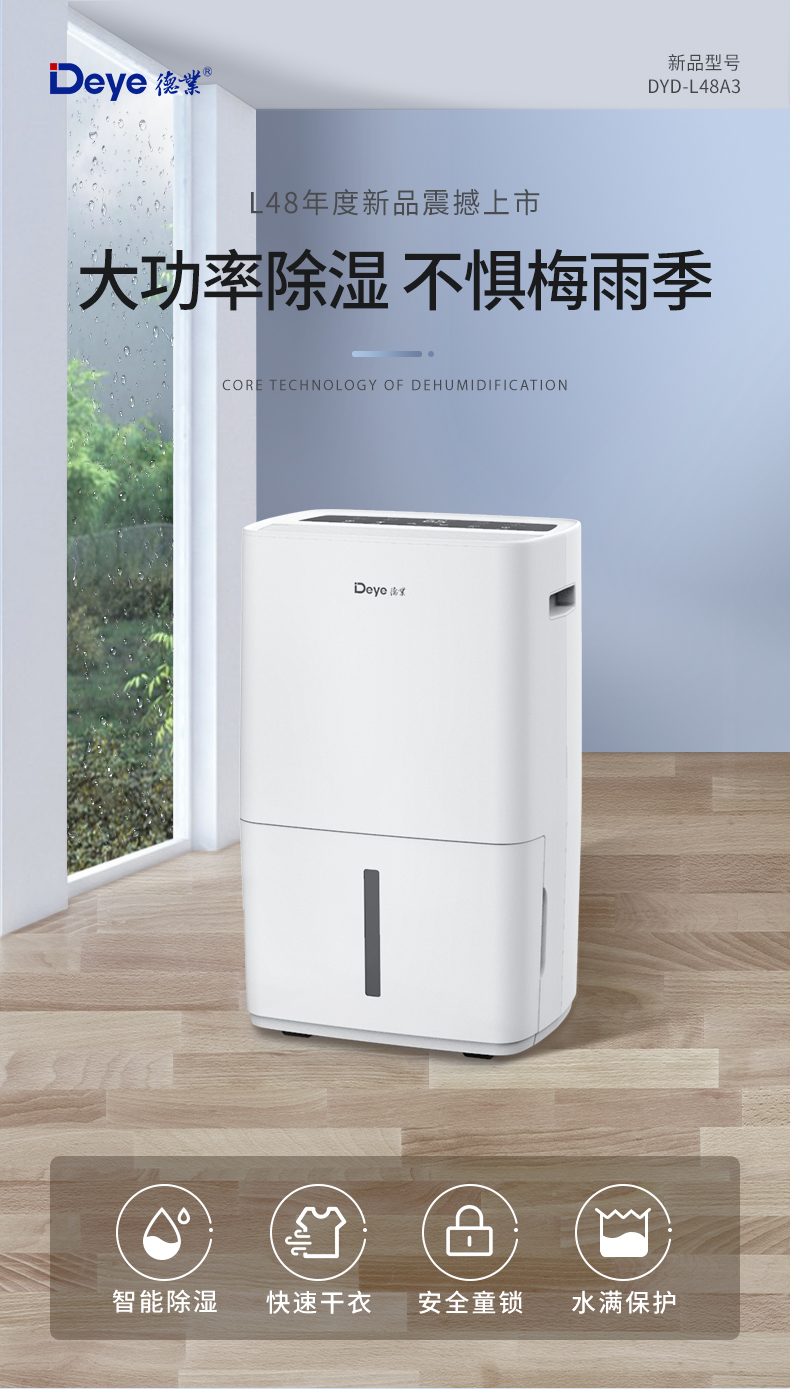 德业家用大功率除湿机DYD-L48A3,APP远程控制;除湿量48L/D,触控大屏控制面板
