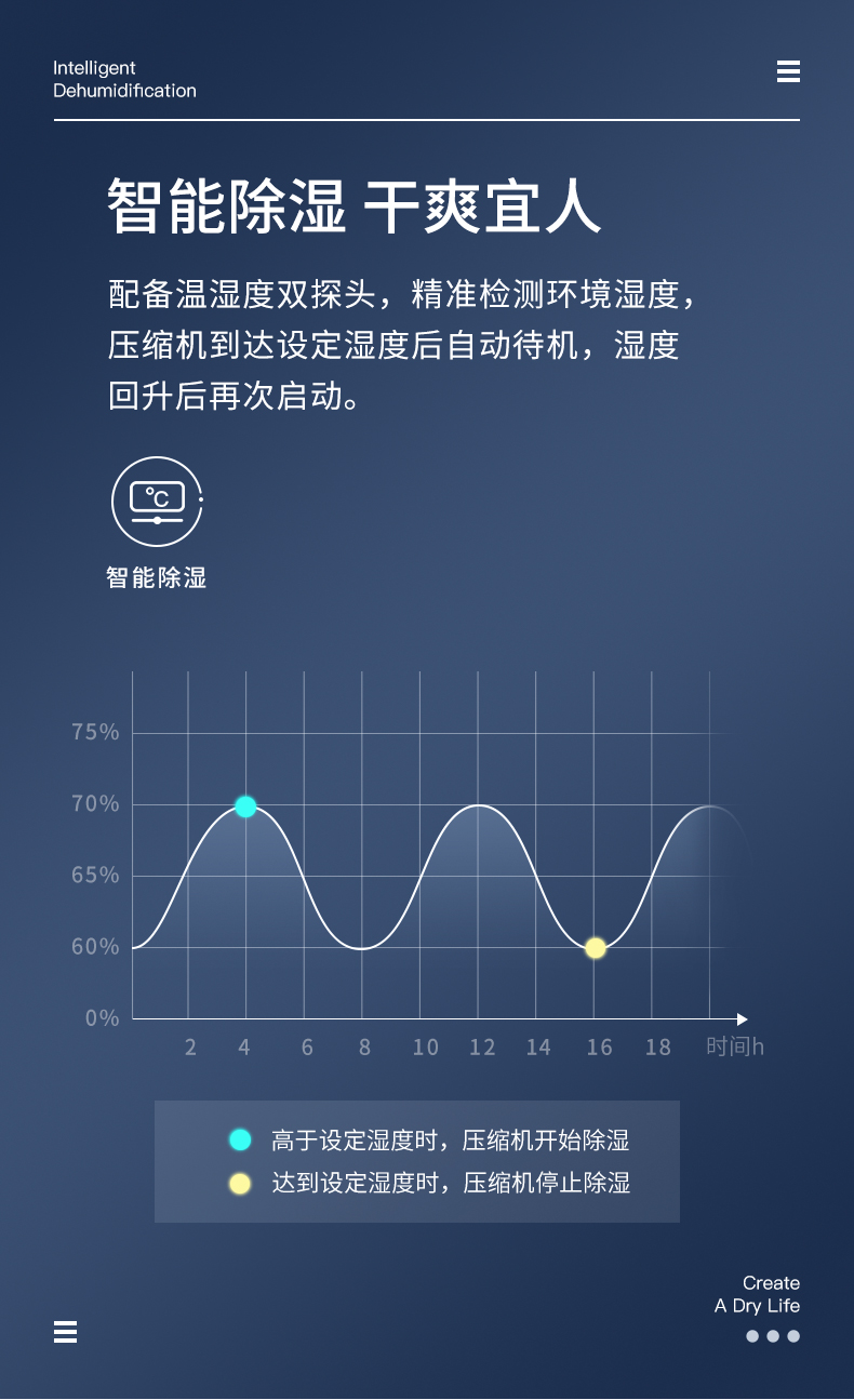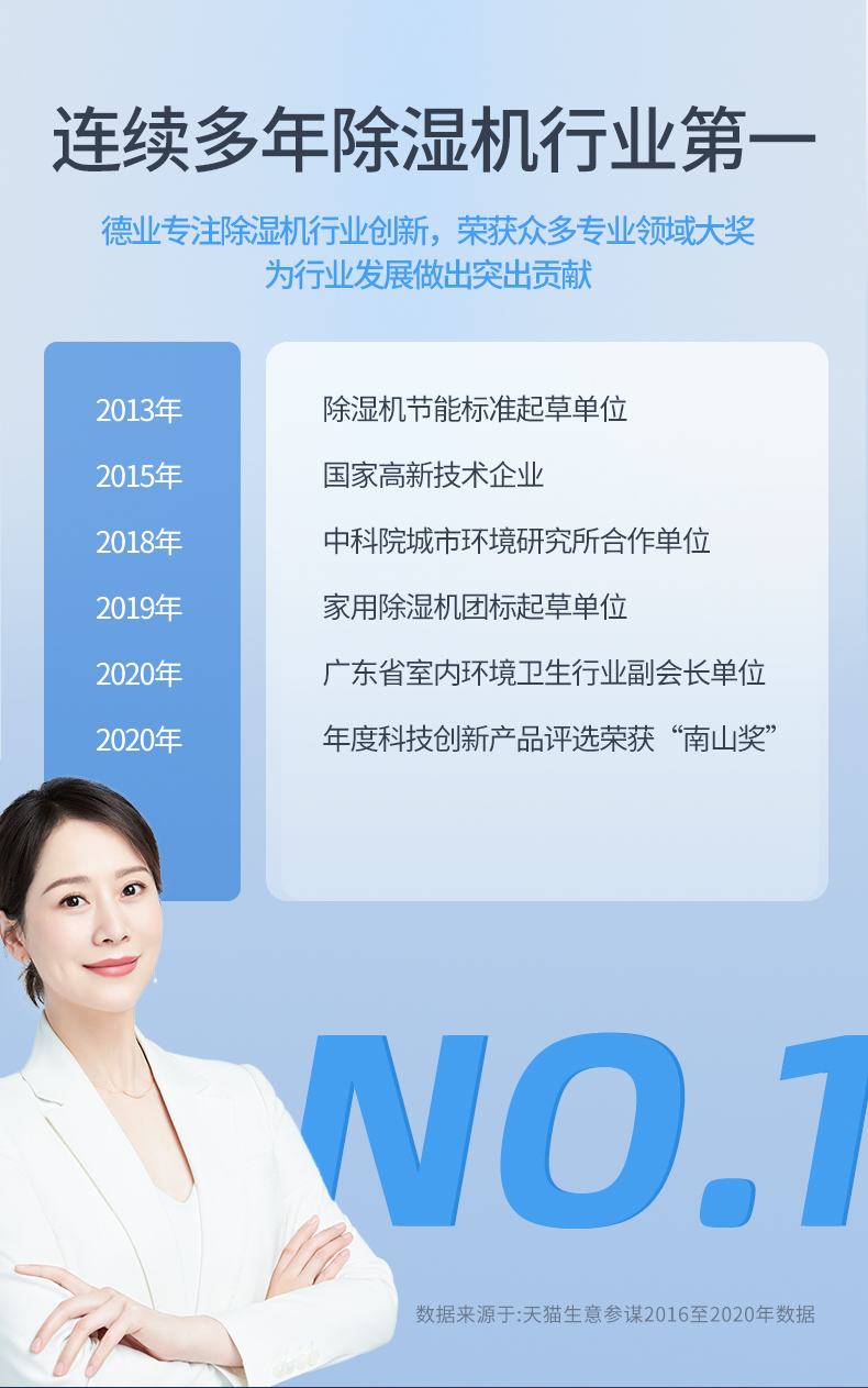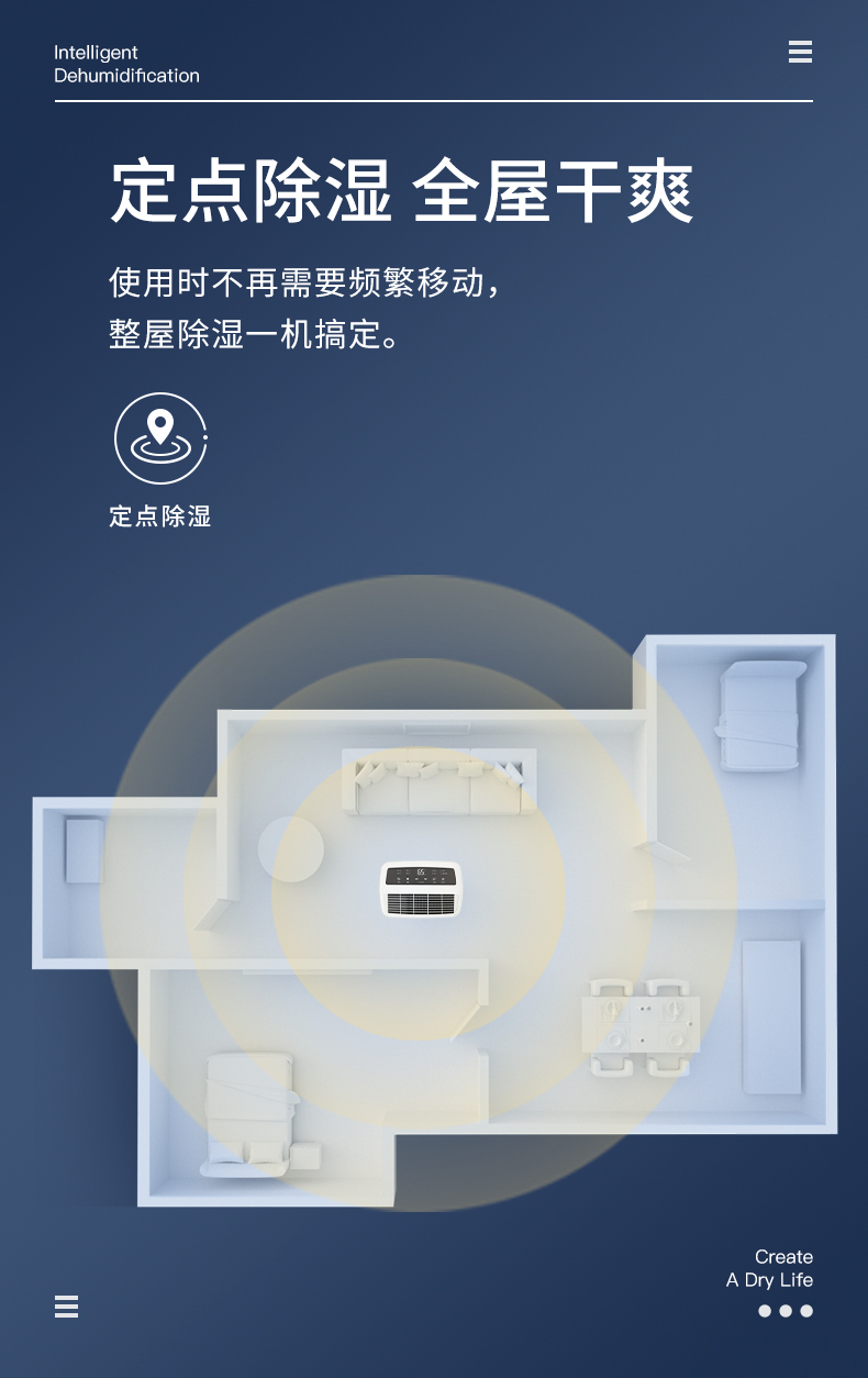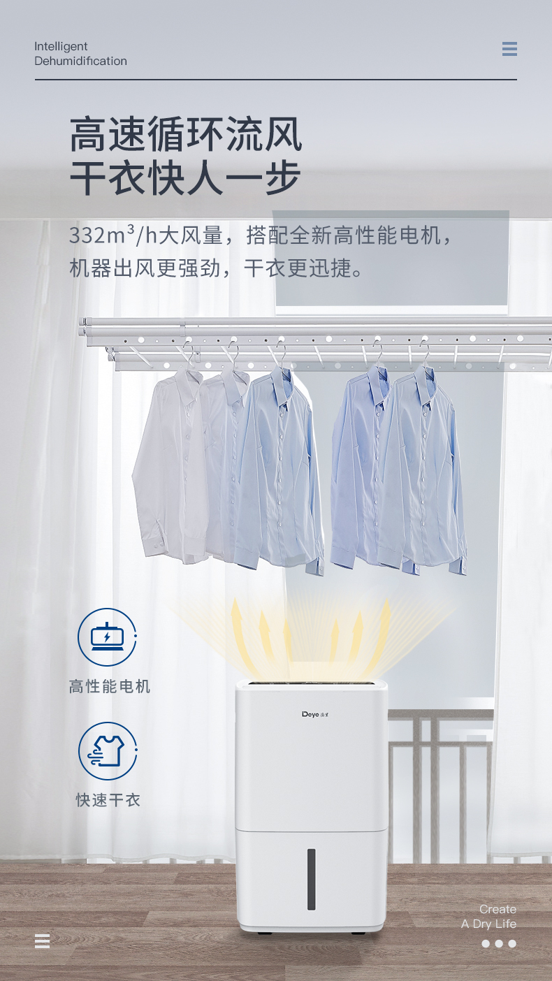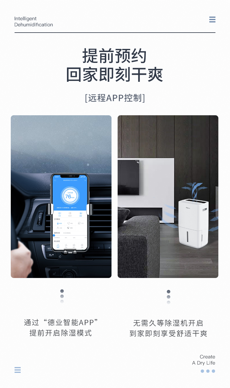 德业家用大功率除湿机DYD-L48A3,APP远程控制;除湿量48L/D,触控大屏控制面板