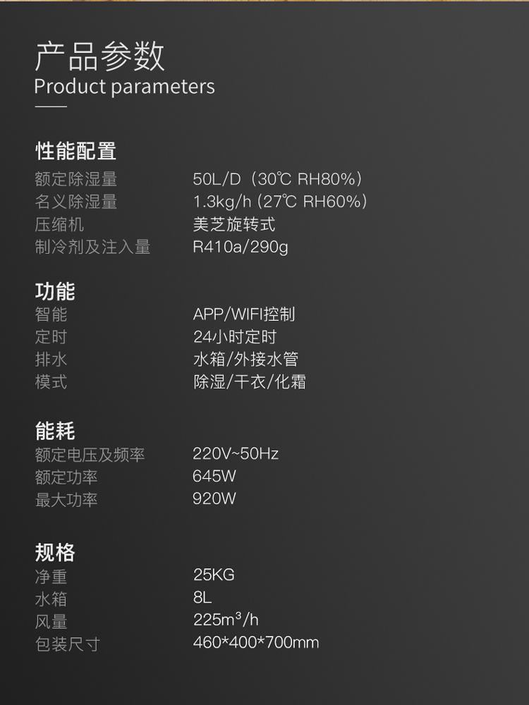 触摸面板 高效转子压缩机,APP远程控制 除湿大约面积:层高2.6米 60~80㎡