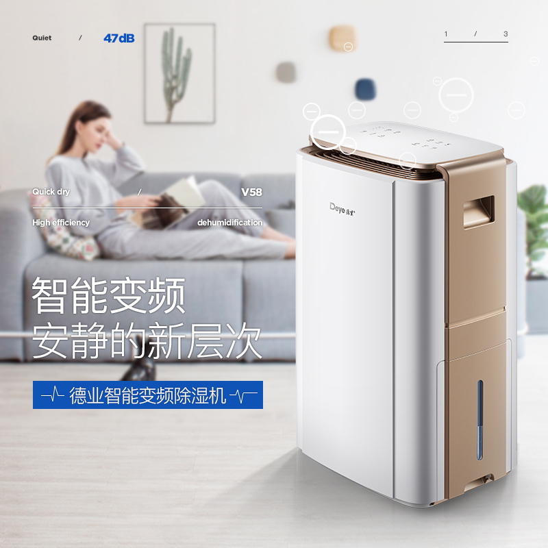 家用高档变频除湿机,噪音低至47dB,每晚只需2度电,负离子净化系统,58L/D除湿量