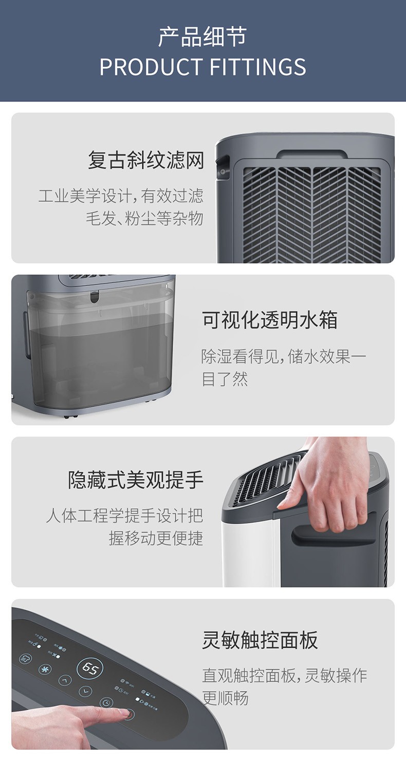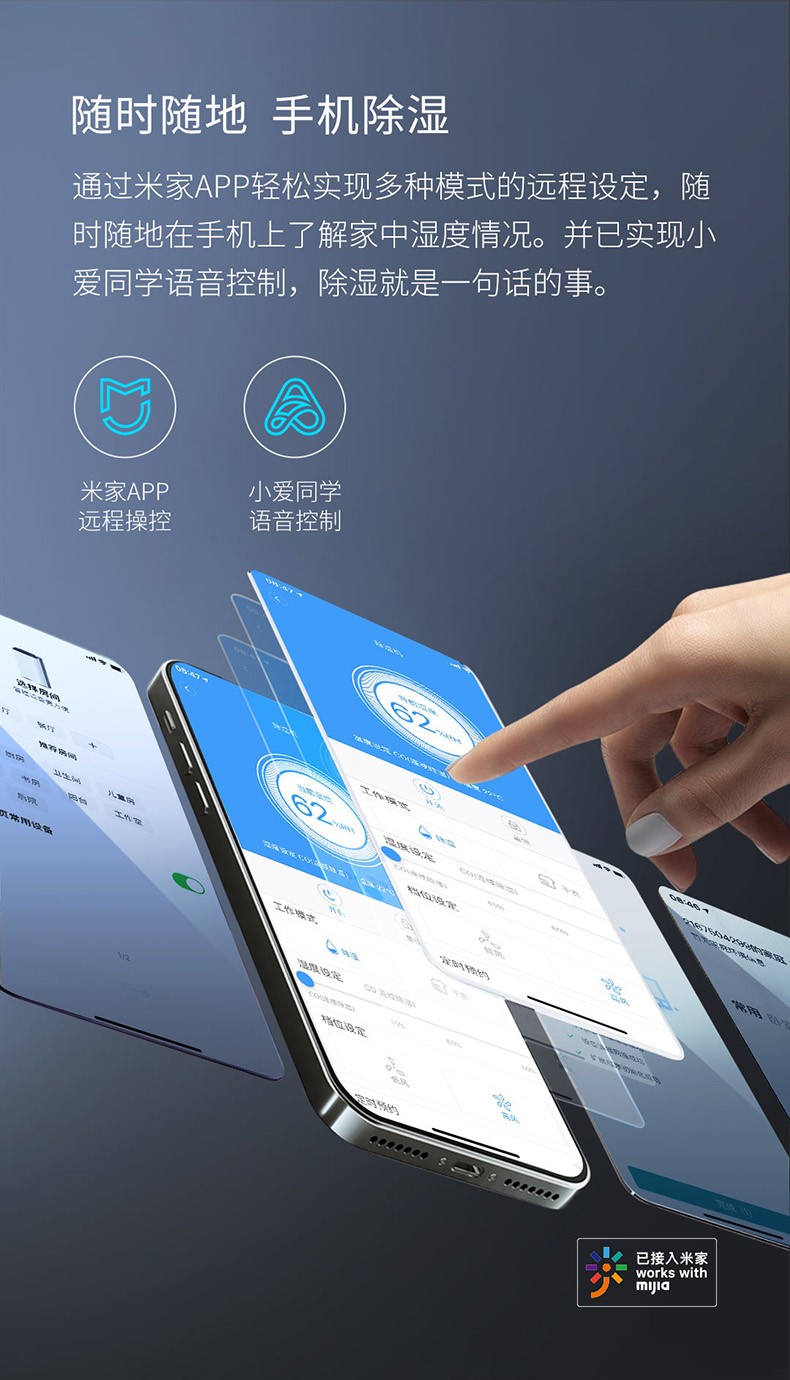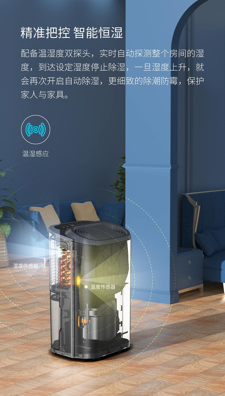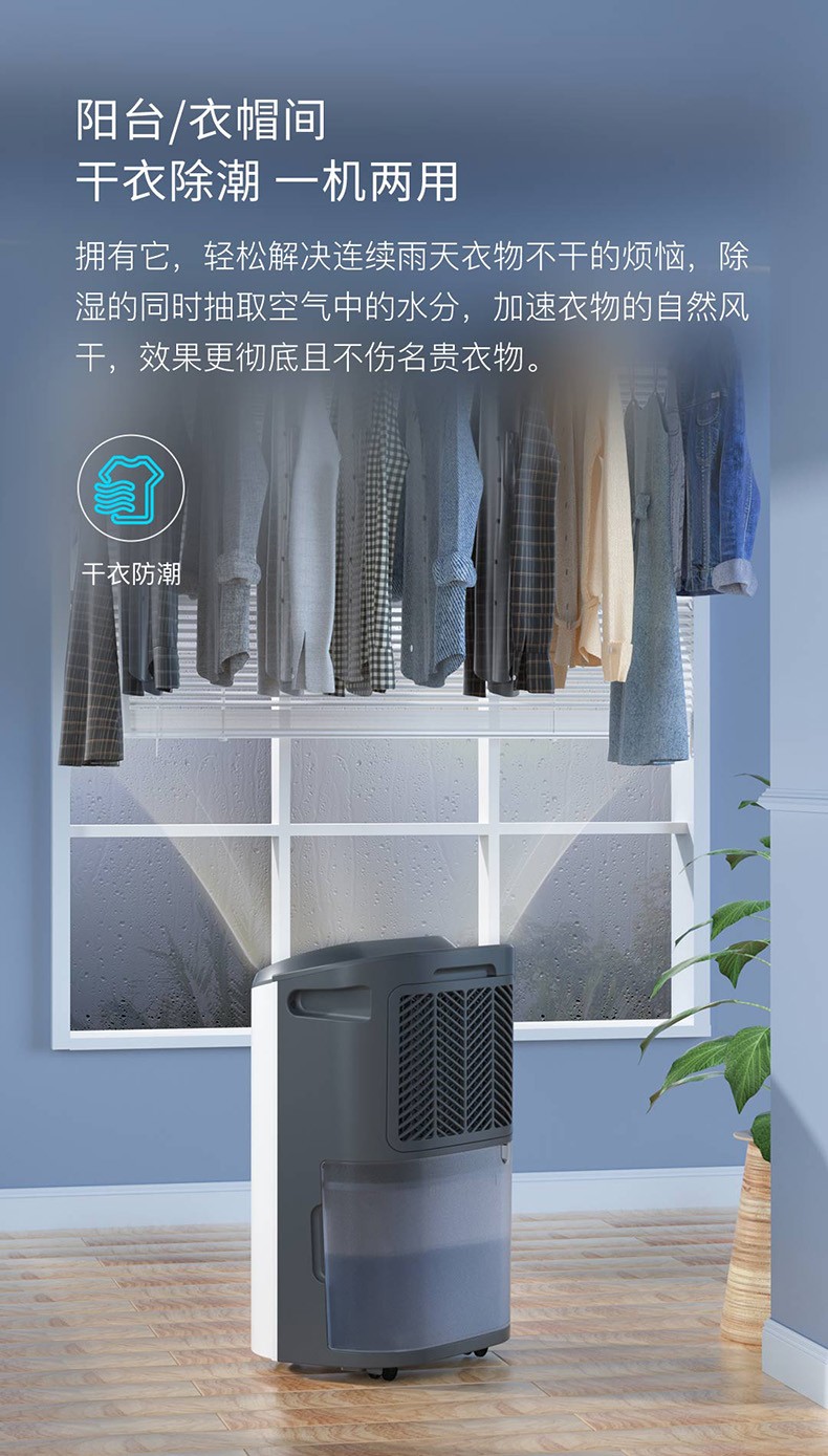 适合储藏室、小卧室、卫生间等小面积除湿场所,可连接米家智能,日除湿量12升/天