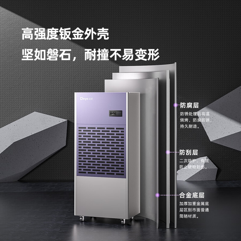 德业工业除湿机DY-8240C,除湿量最大可达260升/天,采用海立高效转子压缩机